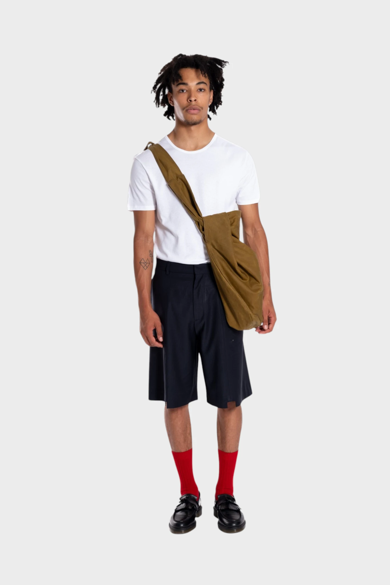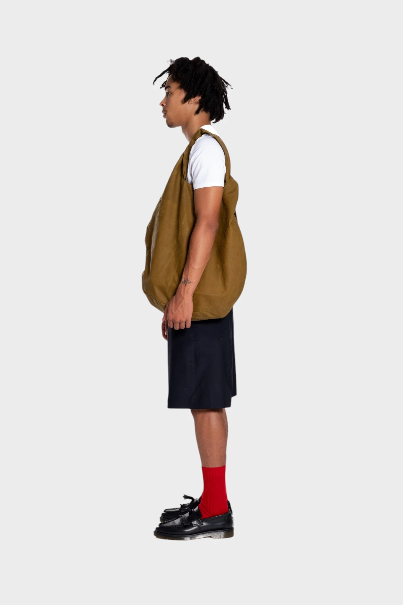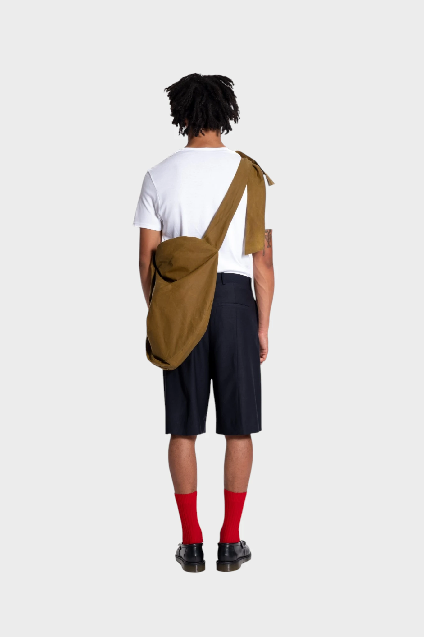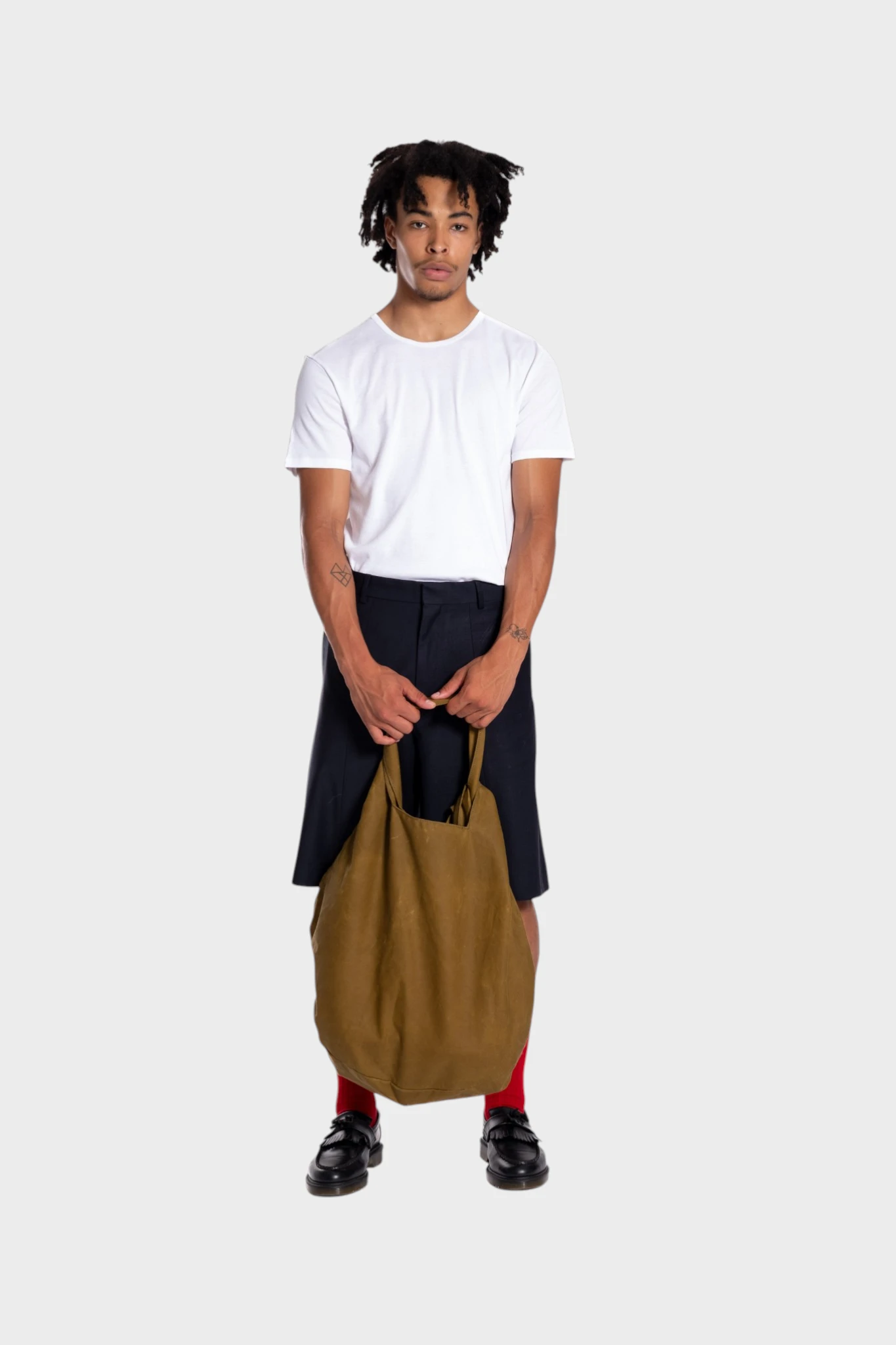 The bag’s silhouette is defined by its contents, with weight and shape naturally guiding how it is carrie thus creating a fluid and adaptable form that evolves with its wearer.
